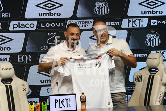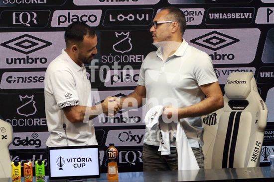 2883350 O Santos FC realiza coletiva de imprensa para apresentação oficial do atacante Moisés,, na Vila Belmiro em Santos, SP.