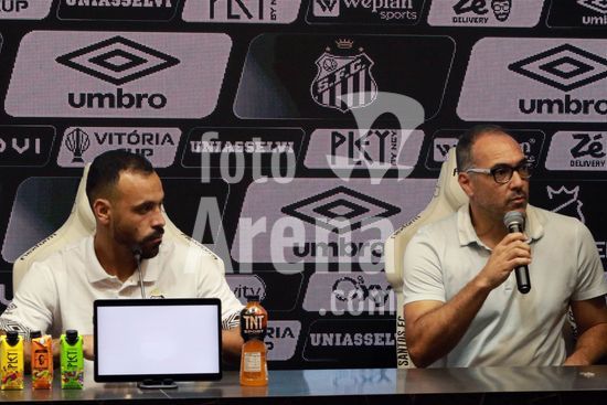 2883331 O Santos FC realiza coletiva de imprensa para apresentação oficial do atacante Moisés,, na Vila Belmiro em Santos, SP.