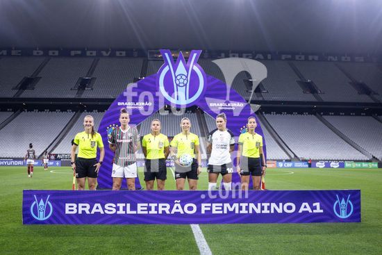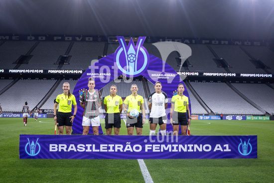 2891830 Equipe de abritragem e suas capitães durante a partida Corinthians X Fluminense realizada na Neo Química Arena, segunda rodada válida pelo Brasileirão Feminino Série A1 em São Paulo, SP.