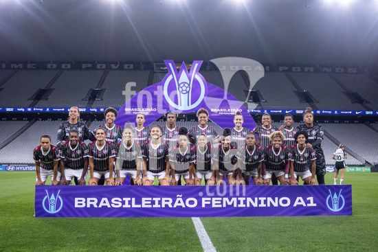 2891848 Flumininense perfilado antes da partida Corinthians X Fluminense realizada na Neo Química Arena, segunda rodada válida pelo Brasileirão Feminino Série A1 em São Paulo, SP.