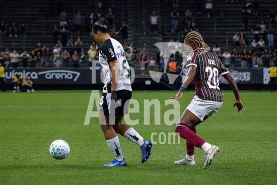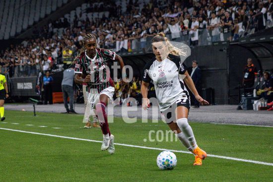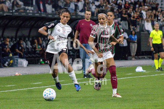 2891638 Gislaine (Fluminense) e Belén Aquino (Corinthians) durante a partida entre Corinthians e Fluminense, válida pela 2ª rodada do Brasileirão Feminino, realizada na noite desta sexta-feira (20) na Neo Química Arena em São Paulo, SP.
