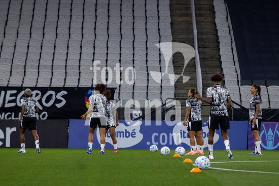 2891863 Aquecimento do Corinthians antes da partida Corinthians X Fluminense realizada na Neo Química Arena, segunda rodada válida pelo Brasileirão Feminino Série A1 em São Paulo, SP.