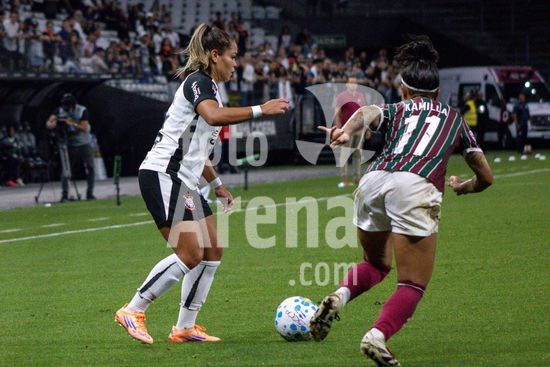 2891643 Kamilla (Fluminense) e Thais Ferreira (Corinthians) durante a partida entre Corinthians e Fluminense, válida pela 2ª rodada do Brasileirão Feminino, realizada na noite desta sexta-feira (20) na Neo Química Arena em São Paulo, SP.