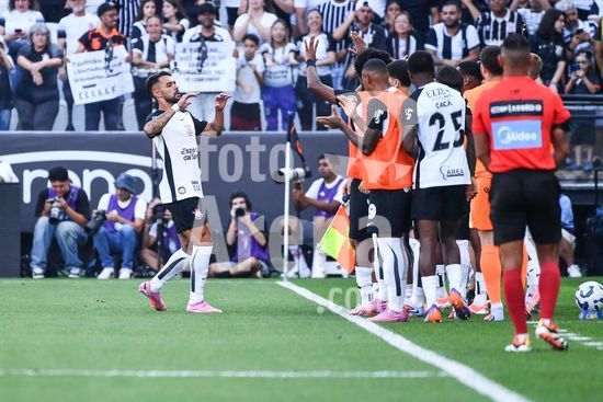 2850947 Botafogo comemora gol durante a partida entre Corinthians e Botafogo, válida pela 36ª rodada do Brasileirão, realizada na tarde deste domingo (30) na Neo Química Arena, em São Paulo, SP.