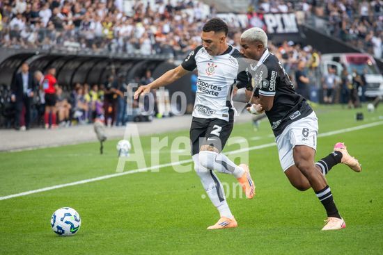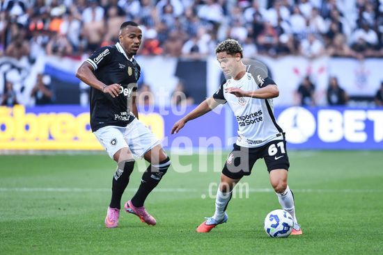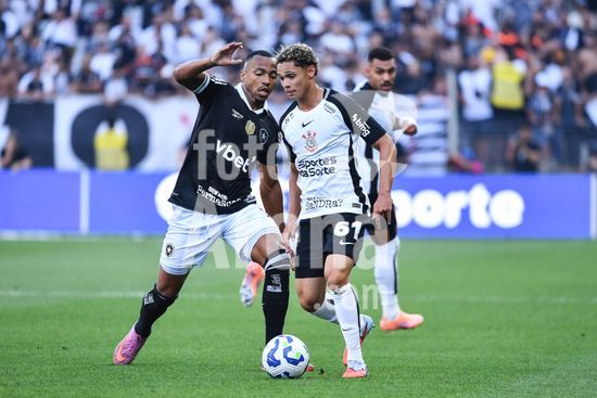 2850927 Matheuzinho do Corinthians (Esquerda) e Cuiabano do Botafogo (Direita) durante partida entre Corinthians x Botafogo, válida pela trigésima sexta rodada do Campeonato Brasileiro de Futebol 2025, neste domingo (30), na Neo Química Arena, SP.