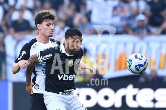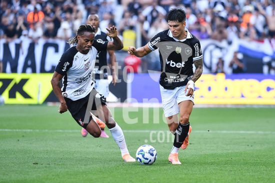 2850925 Joaquín Correa do Botafogo (Esquerda) e André Carrillo do Corinthians (Direita) disputam a bola, durante partida entre Corinthians x Botafogo, válida pela trigésima sexta rodada do Campeonato Brasileiro de Futebol 2025, neste domingo (30), na Neo Química Arena, SP.