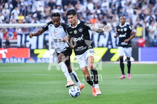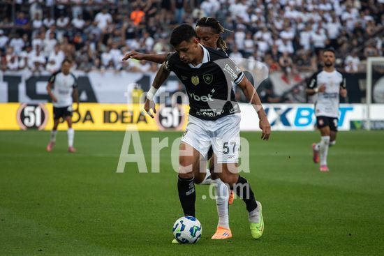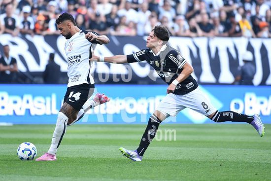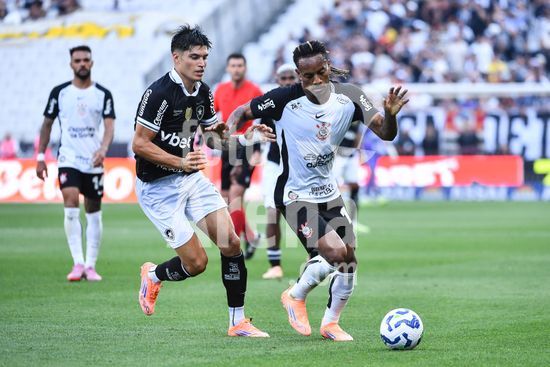 2850886 Joaquín Correa do Botafogo (Esquerda) e Kauê do Corinthians (Direita) disputam a bola, durante partida entre Corinthians x Botafogo, válida pela trigésima sexta rodada do Campeonato Brasileiro de Futebol 2025, neste domingo (30), na Neo Química Arena, SP.