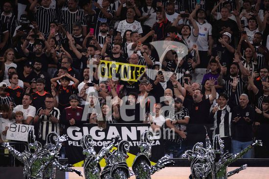 2881118 Faixa da torcida do Corinthians durante a partida entre Corinthians x Palmeiras realizada na Neo Química Arena em São Paulo, SP. O jogo é válido pela 7ª rodada do Paulistão 2026.