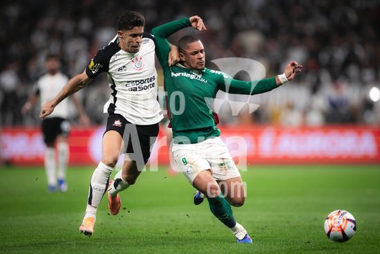 2881136 Matheus Bidu e Carlos Miguel durante a partida entre Corinthians x Palmeiras realizada na Neo Química Arena em São Paulo, SP. O jogo é válido pela 7ª rodada do Paulistão 2026.