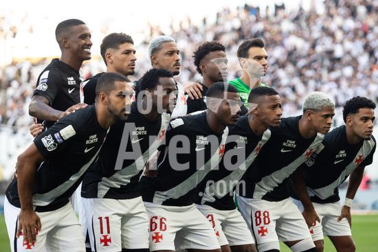 2932589 Elenco do Vasco durante a partida entre Corinthians e Vasco, válida pela 13ª rodada do Brasileirão, realizada na tarde deste domingo (26) na Neo Química Arena, em São Paulo, SP.