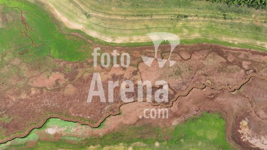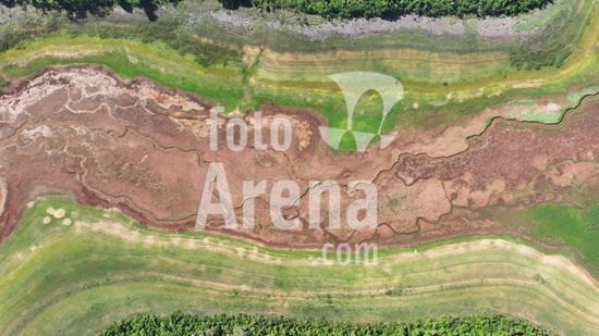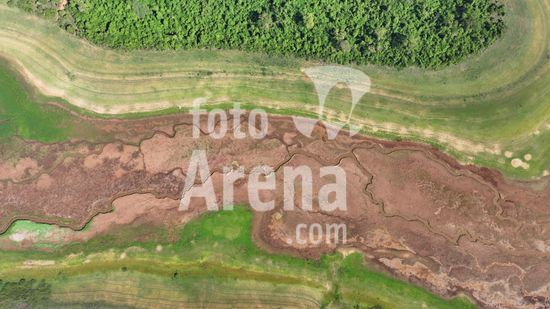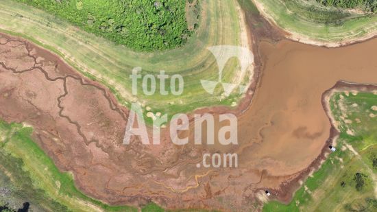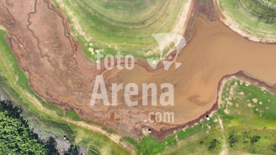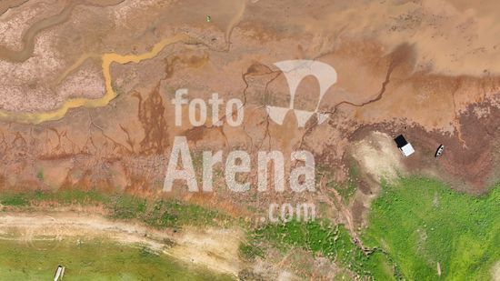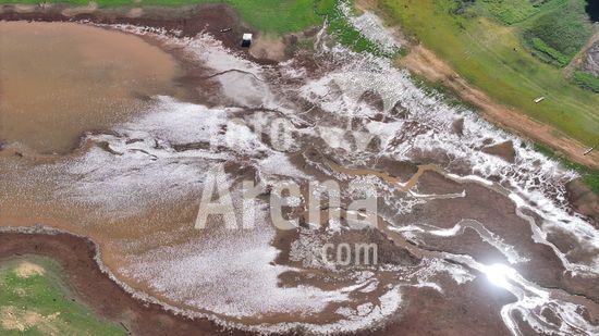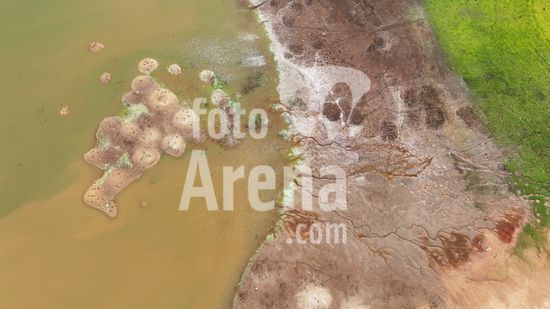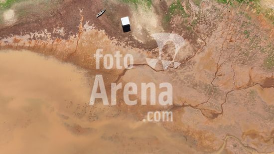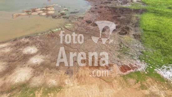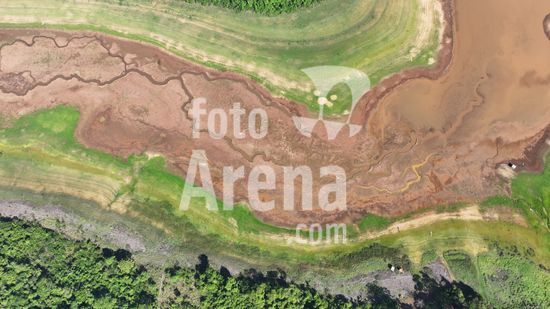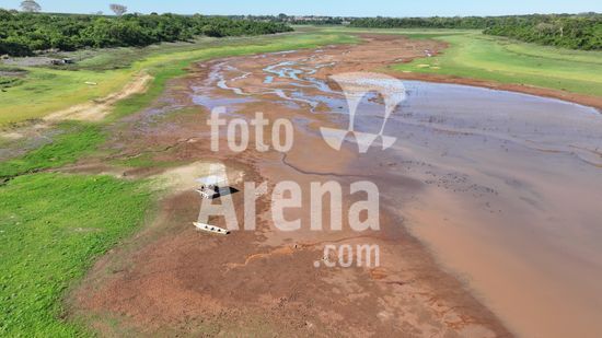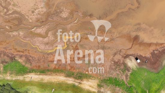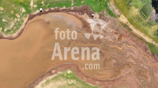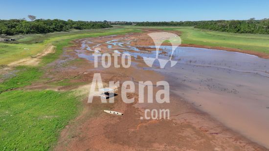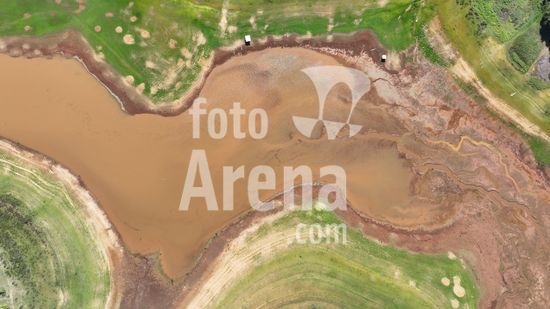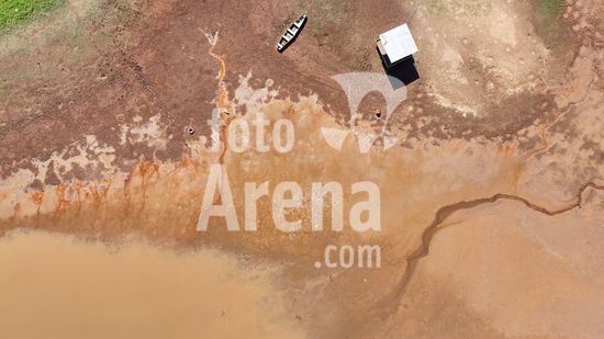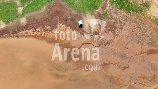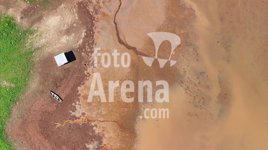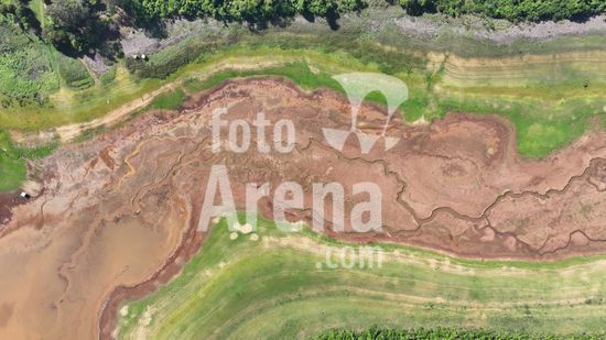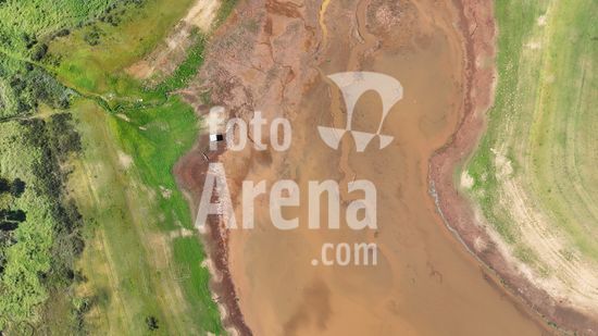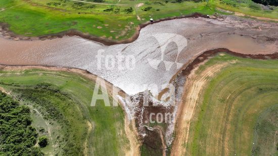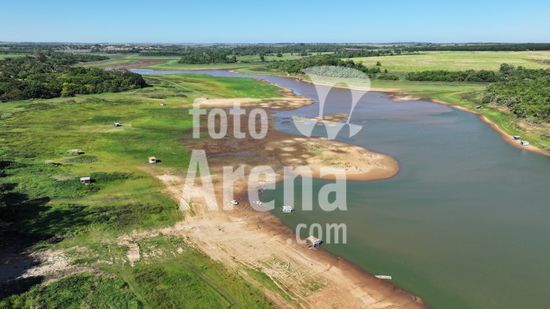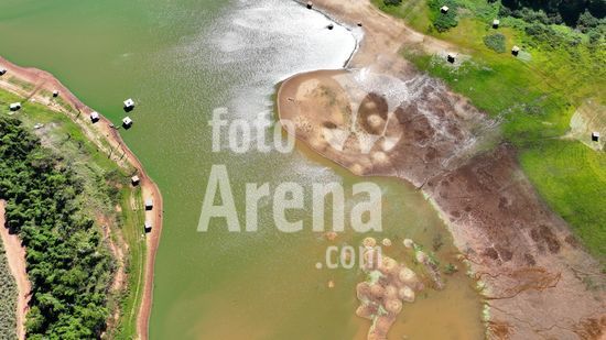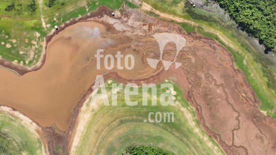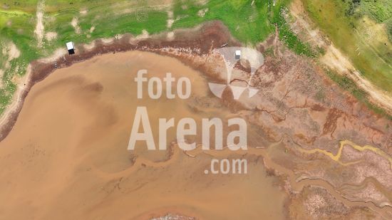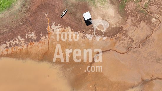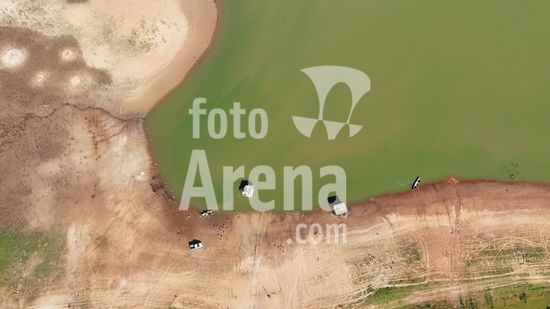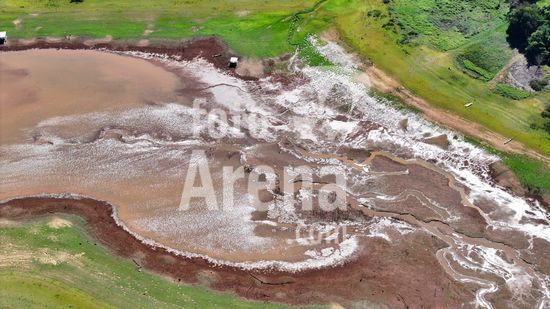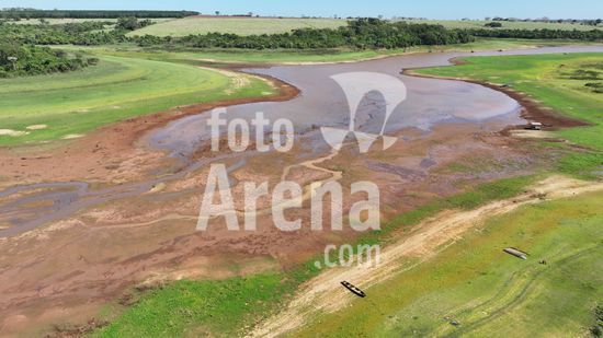 Imagem feito por um drone , mostra a represa de Marimbondo, na cidade de Guaraci, Interior de São Paulo, onde deveria estar com 30 metros de profundidade é possível ver filetes de água.O sudeste está com uma das bacias hidrelétricas com níveis abaixo de 40%, segundo site da ONS, (operador nacional do sistema elétrico). Com quatro grandes reservatórios ao longo da bacia do Rio Grande, uma da principais do país, responsável por 25% da geração de energia do sistema. A bacia do Rio Grande tem enfrentando baixos níveis desde 2021. O reservatório de Marimbondo que fica próximo da cidade de Guaraci- interior de SP e está com níveis abaixo de 29% da sua capacidade .O reservatório de Água Vermelha, que fica mais abaixo na bacia, está com 24% e o deFurnas, o primeiro deles e o maior reservatório do sudeste, conhecido como "Mar de Minas" está com 36%.A maior rede de represas de abastecimento de água da capital paulista, sistema Cantareira, está com volume útil a 25,2% da capacidade, bem próximo de uma marca crítica de 24% em 2015. Uma estiagem atinge também o nordeste brasileiro, que tem oito de seus nove estados entre os mais impactados, e no Acre, onde todas as 22 cidades foram afetadas.