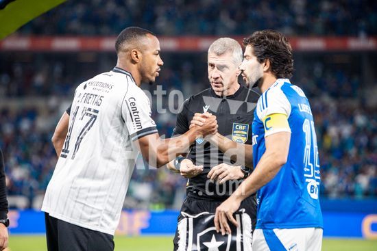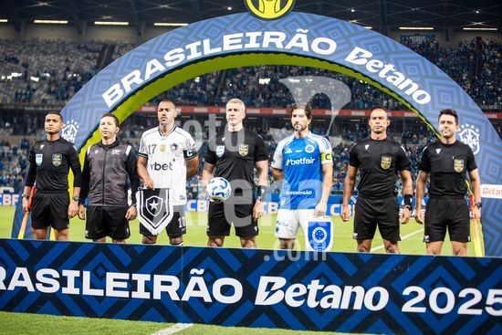2853543 Jogo entre Cruzeiro x Botafogo, válido pela rodada 37 do campeonato brasileiro de 2025, nesta quinta-feira (04), Mineirão. Foto dos campitães com arbritagem.