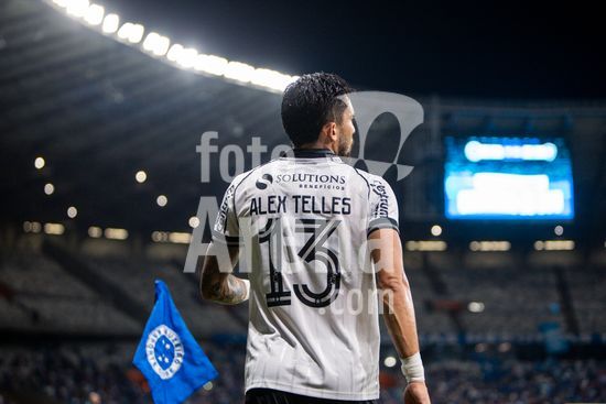 2853561 Jogo entre Cruzeiro x Botafogo, válido pela rodada 37 do campeonato brasileiro de 2025, nesta quinta-feira (04), Mineirão. Na foto, Alex Telles do Botafogo beija a bola.