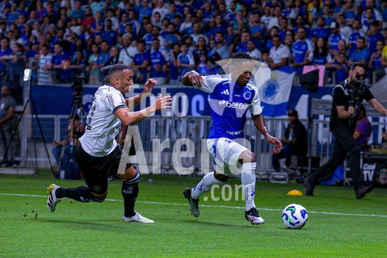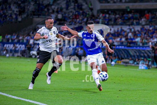 2853513 Jogo entre Cruzeiro x Botafogo, válido pela rodada 37 do campeonato brasileiro de 2025, nesta quinta-feira (04), Mineirão. Disputa de bola entre Artur do botafogo e Kaiki do Cruzeiro.