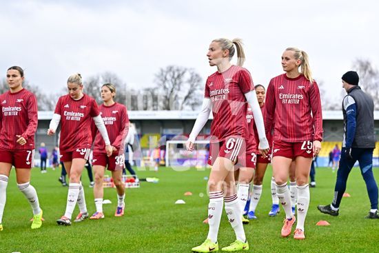 2861626 Leah Williamson, do Arsenal, aquece antes da partida das quartas de final da Copa da Liga Feminina Subway entre Crystal Palace e Arsenal, no VBS Community Stadium, em 21 de dezembro de 2025, em Sutton, Inglaterra. (Yaroslav Dunka / SPP)