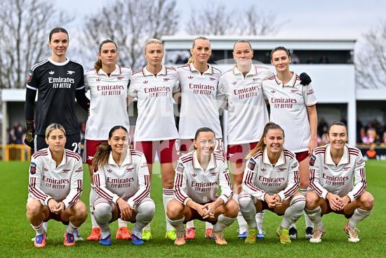 2861613 Foto da equipe feminina do Arsenal antes da partida das quartas de final da Copa da Liga Feminina Subway entre Crystal Palace e Arsenal, no VBS Community Stadium, em 21 de dezembro de 2025, em Sutton, Inglaterra. (Yaroslav Dunka / SPP)