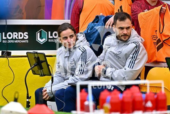 2861614 Renee Slegers, treinadora do Arsenal, observa o jogo antes da partida das quartas de final da Copa da Liga Feminina Subway entre Crystal Palace e Arsenal, no VBS Community Stadium, em 21 de dezembro de 2025, em Sutton, Inglaterra. (Yaroslav Dunka / SPP)