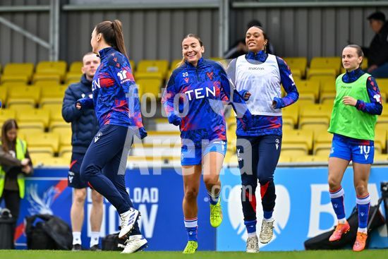 2861628 Jogadoras do Crystal Palace se aquecem antes da partida das quartas de final da Copa da Liga Feminina Subway entre Crystal Palace e Arsenal no VBS Community Stadium em 21 de dezembro de 2025 em Sutton, Inglaterra. (Yaroslav Dunka / SPP)