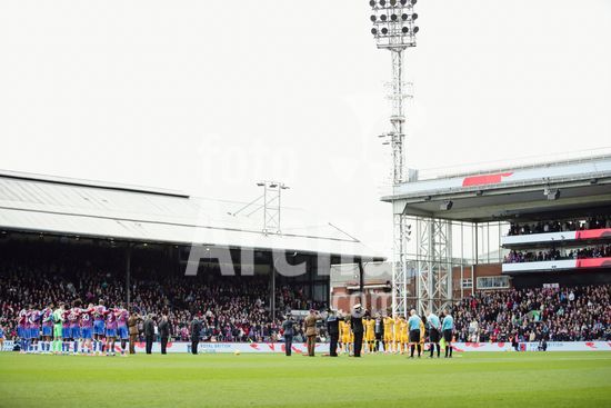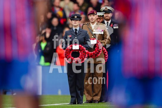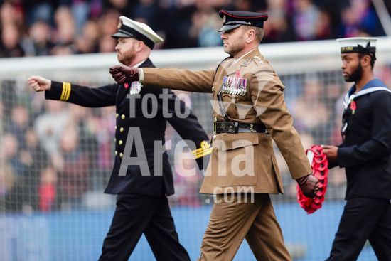2839176 Representantes das forcas armadas realizam uma cerimonia de deposicao de coroa de flores antes da partida da Premier League entre Crystal Palace e Brighton & Hove Albion, no Selhurst Park, em Londres, Inglaterra. (Liam Asman/SPP)