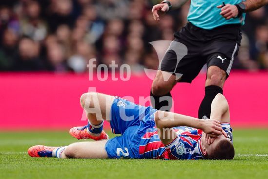 2839191 Adam Wharton (20 Crystal Palace) caido no chao, sentindo dores, durante a partida da Premier League entre Crystal Palace e Brighton & Hove Albion, no Selhurst Park, em Londres, Inglaterra. (Liam Asman/SPP)