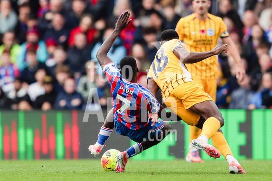 2839196 Ismaila Sarr (7 Crystal Palace) sofre falta de Danny Welbeck (18 Brighton) durante o jogo da Premier League entre Crystal Palace e Brighton & Hove Albion no Selhurst Park em Londres, Inglaterra. (Liam Asman/SPP)