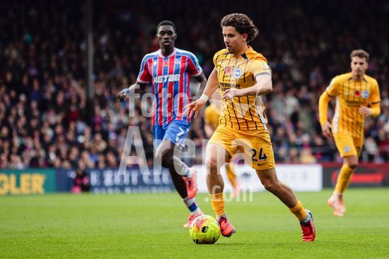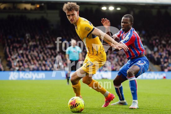 2839207 Mats Wieffer (27 Brighton) e Tyrick Mitchell (3 Crystal Palace) em acao durante o jogo da Premier League entre Crystal Palace e Brighton & Hove Albion no Selhurst Park em Londres, Inglaterra. (Liam Asman/SPP)