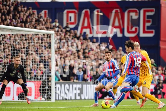 2839211 Daichi Kamada (18 Crystal Palace) chuta durante o jogo da Premier League entre Crystal Palace e Brighton & Hove Albion no Selhurst Park em Londres, Inglaterra. (Liam Asman/SPP)