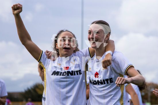 2839137 Jess Reavill (41 Sheffield United) comemora seu gol com Abbie La Fayette (3 Sheffield United) durante a partida entre Crystal Palace e Sheffield United na WSL2 no VBS Community Stadium Sutton, Londres, Inglaterra, no domingo, 9 de novembro de 2025. (Claire Jeffrey / SPP)