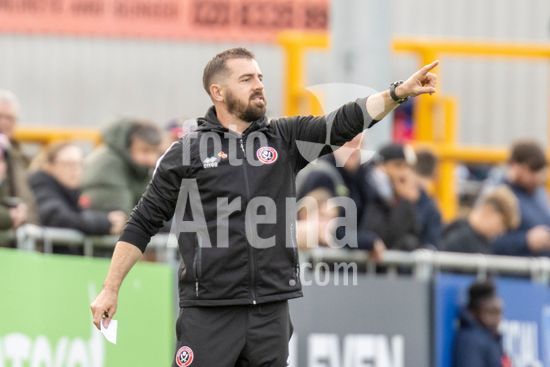 2839139 Ash Thompson (treinador do Sheffield United) dando instrucoes durante a partida entre Crystal Palace e Sheffield United na WSL2 no VBS Community Stadium Sutton, em Londres, Inglaterra, no domingo, 9 de novembro de 2025. (Claire Jeffrey / SPP)