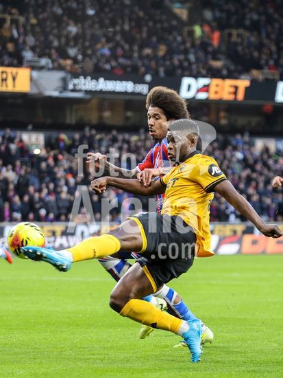 2846661 Eddie Nketiah (9 Crystal Palace) estica o braco para alcancar a bola durante a partida da Premier League entre Wolverhampton Wanderers e Crystal Palace no estadio Molineux em Wolverhampton, Inglaterra. (Natalie Mincher/SPP)