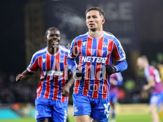 2846880 Yeremy Pino (10 Crystal Palace) comemora o segundo gol durante a partida da Premier League entre Wolverhampton Wanderers e Crystal Palace no estadio Molineux em Wolverhampton, Inglaterra. (Natalie Mincher/SPP)