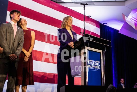 ny051125002911 Rep. Mikie Sherrill (D-N.J.), the Democratic candidate for governor of New Jersey, takes the stage after her victory was announced at an election night watch party in East Brunswick, N.J., Nov. 4, 2025. (Bryan Anselm/The New York Times/Fotoarena)