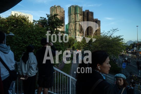 ny281125105312 Bystanders look on as emergency workers search the burnt wreckage at the Wang Fuk Court apartment complex in Hong Kong on Friday, Nov. 28, 2025. The death toll from Hong KongÕs deadliest fire in decades rose to 128 on Friday as hope of finding survivors dwindles, with many residents of the densely packed residential towers still unaccounted for. (Lam Yik Fei/The New York Times/Fotoarena)