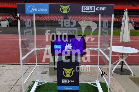 2875354 Cabine do VAR durante partida entre São Paulo FC x Flamengo, válida pela primeira rodada do Campeonato Brasileiro de Futebol 2026, nesta quarta feira (28), no Morumbis, SP.
