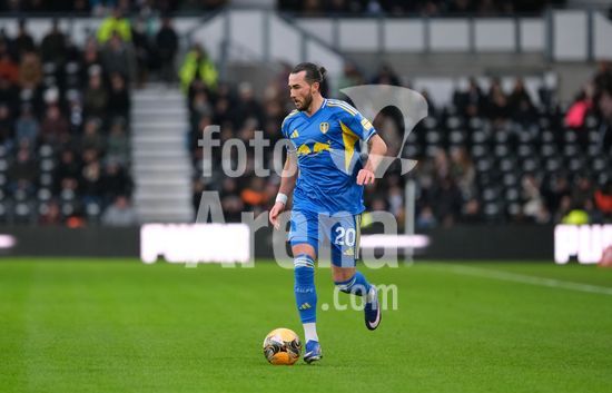 2867336 Jack Harrison, do Leeds United, com a bola durante a partida da terceira rodada da Copa da Inglaterra (Emirates FA Cup) entre Derby County e Leeds United, no Estadio Pride Park, em Derby. (Paul Bonser/Sports Press Photo / SPP)