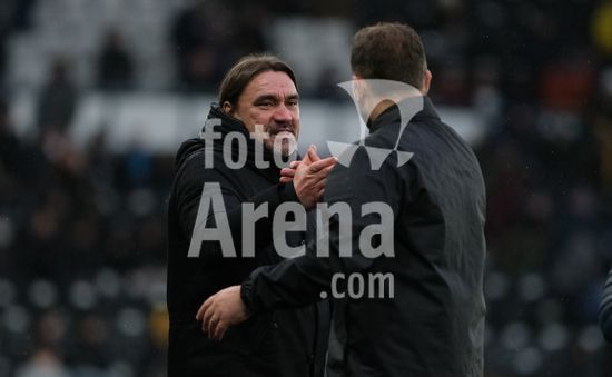 2867343 O treinador do Leeds United, Daniel Farke, e o treinador do Derby County, John Eustace, apos o apito final durante a partida da terceira rodada da Copa da Inglaterra (Emirates FA Cup) entre Derby County e Leeds United, no Estadio Pride Park, em Derby. (Paul Bonser/Sports Press Photo / SPP)