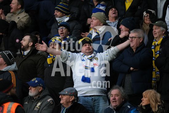 2867380 Torcedores do Leeds United comemoram durante a partida da terceira rodada da Copa da Inglaterra (Emirates FA Cup) entre Derby County e Leeds United, no Estadio Pride Park, em Derby. (Paul Bonser/Sports Press Photo / SPP)