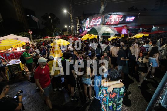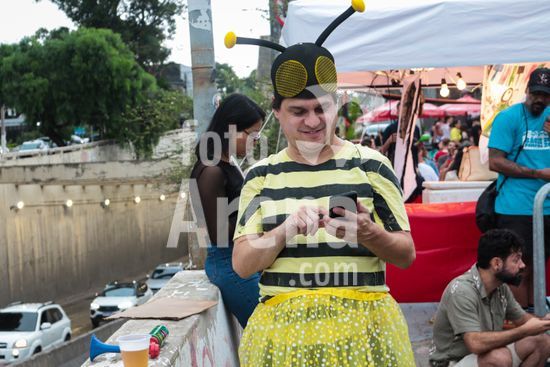 Cortejo do bloco pela Av. Vital Brasil durante Desfile de pré Carnaval do bloco Bantantã Folia, realizada na tarde desta Sexta (06) na R. Des. Armando Fairbanks no Butantã, São Paulo, SP. O bloco tem 30 anos de tradição e o cortejo segue pelas imediações da Av. Vital Brasil e do Metrô Butantã, Zona Oeste da capital.