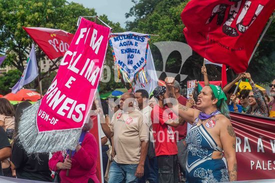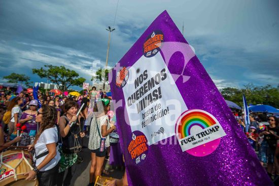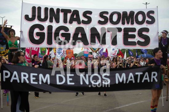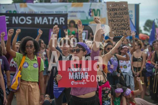 2901855 Movimento feminnista e demaais grupos de esquerda, participam das manifestações do Dia Internacional das Mulheres em Brasília. Brasília,, DF. 08.