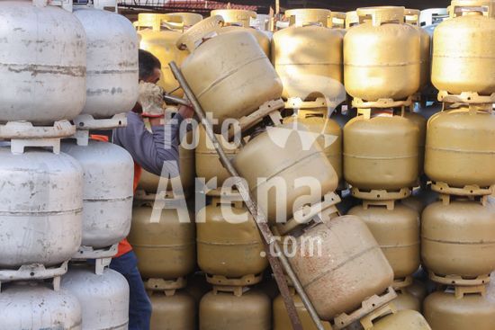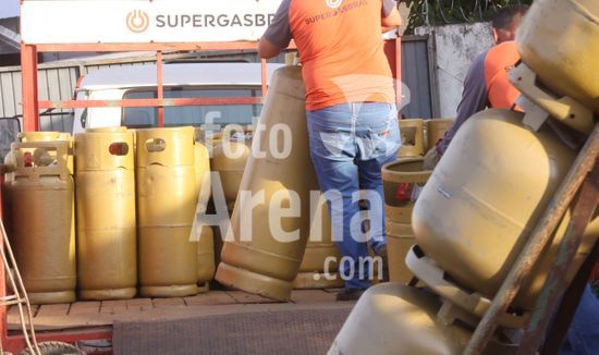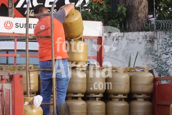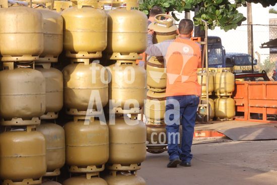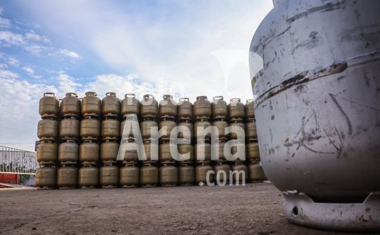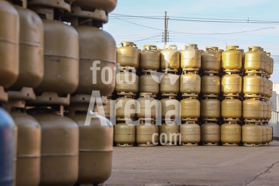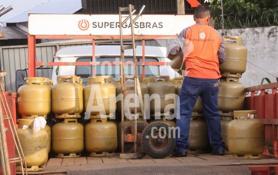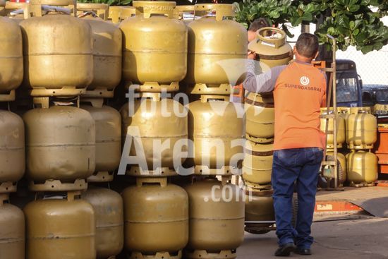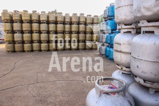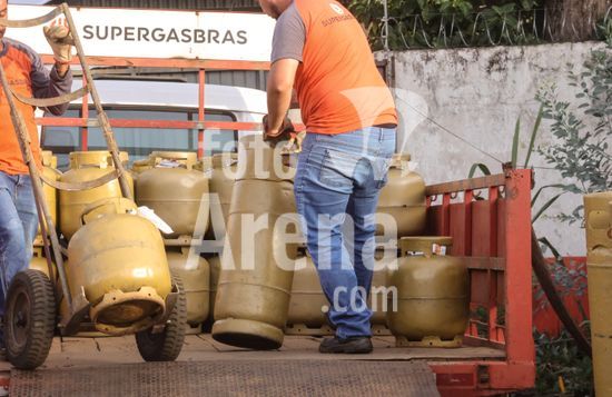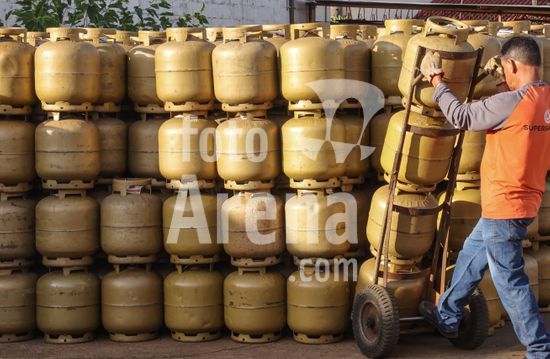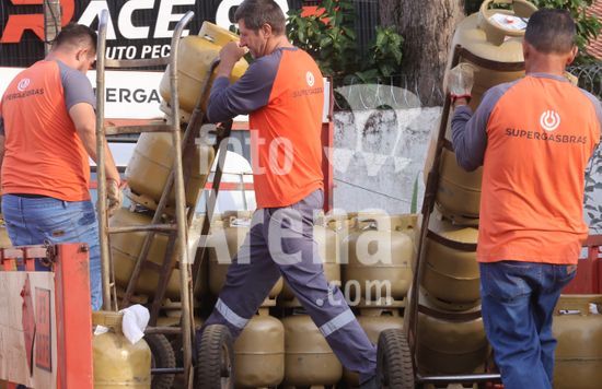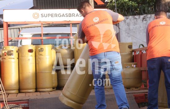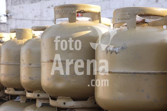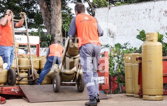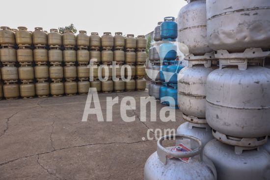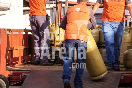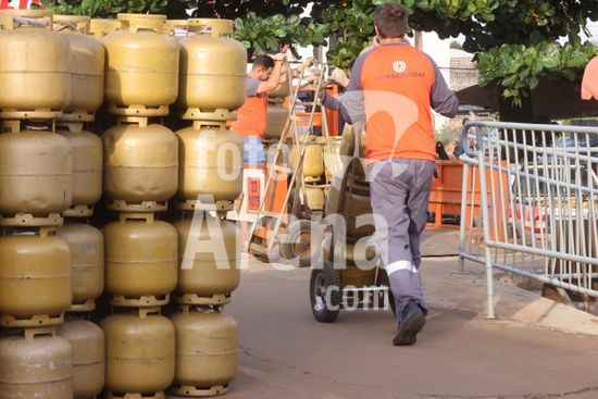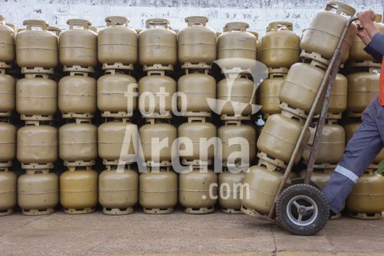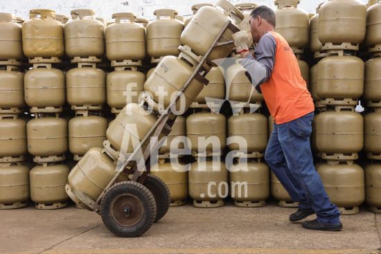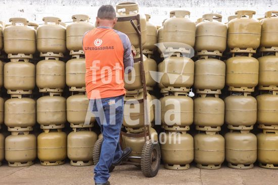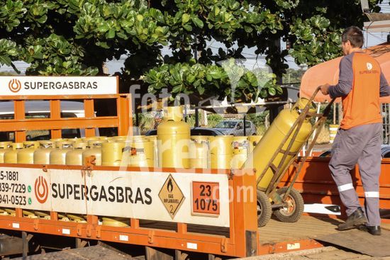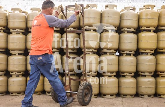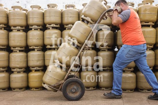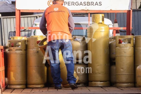 2899414 Distribuidora de gás de cozinha em Campo Mourão, na Região Centro-Oeste do Paraná. Na foto, funcionários carregam caminhões com botijões de gás de cozinha para entrega em pontos de revenda.