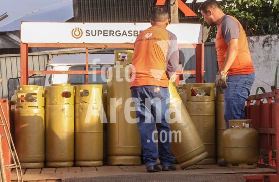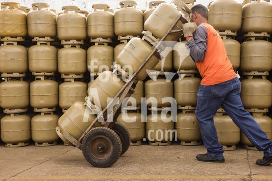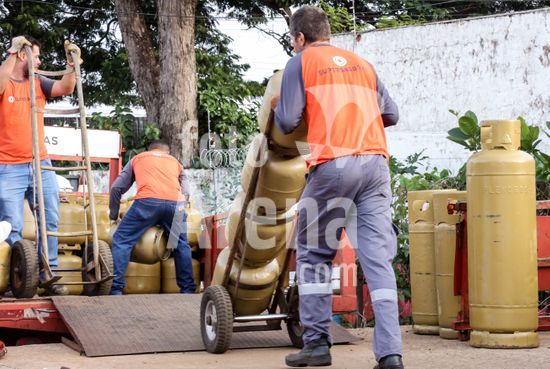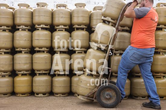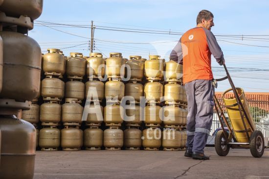 2899400 Distribuidora de gás de cozinha em Campo Mourão, na Região Centro-Oeste do Paraná. Na foto, funcionários carregam caminhões com botijões de gás de cozinha para entrega em pontos de revenda.