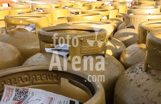 2899445 Distribuidora de gás de cozinha em Campo Mourão, na Região Centro-Oeste do Paraná. Na foto, funcionários carregam caminhões com botijões de gás de cozinha para entrega em pontos de revenda.