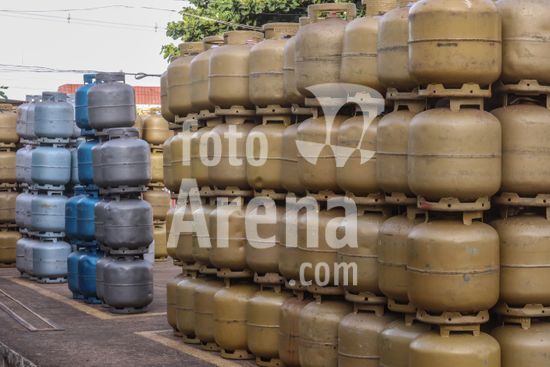 2899426 Distribuidora de gás de cozinha em Campo Mourão, na Região Centro-Oeste do Paraná. Na foto, funcionários carregam caminhões com botijões de gás de cozinha para entrega em pontos de revenda.