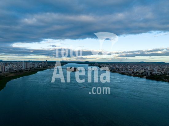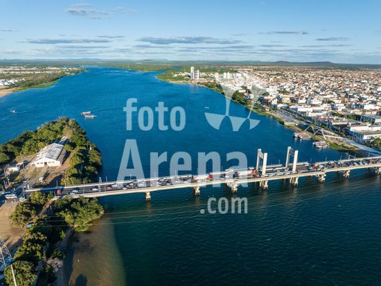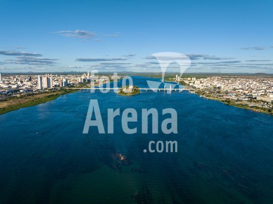 2419615 Imagem capturada por drone da Ponte Presidente Eurico Gaspar Dutra com Petrolina ao fundo, em Petrolina PE. Informações das coordenadas 9°24'29.3724" S 40°30'8.3131" W