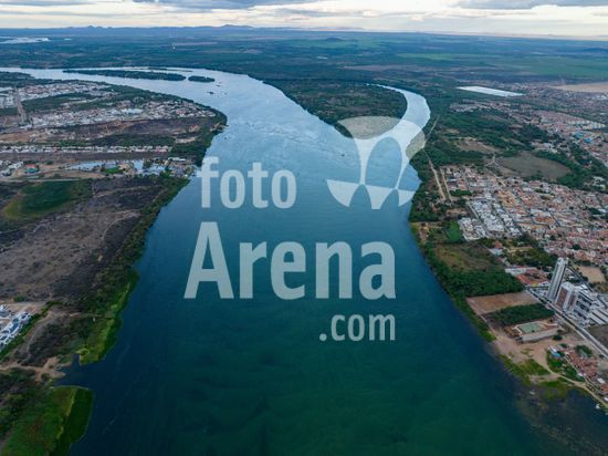 2415933 Imagem capturada por drone do leito do Rio São Francisco, em Petrolina.Informações das coordenadas 9°24'16.9631" S 40°30'34.8716" W