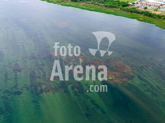 2415965 Imagem capturada por drone do leito do Rio São Francisco, em Petrolina.Informações das coordenadas 9°24'16.9604" S 40°30'34.8731" W
