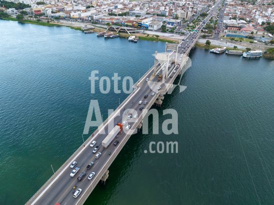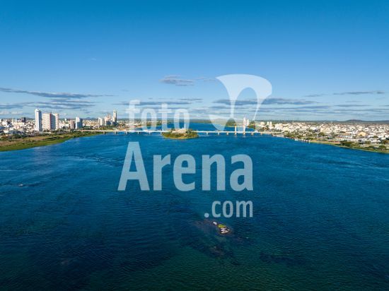 2419611 Imagem capturada por drone da Ponte Presidente Eurico Gaspar Dutra com Petrolina ao fundo, em Petrolina PE. Informações das coordenadas 9°24'29.3722" S 40°30'8.312" W