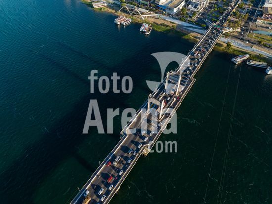 2419619 Imagem capturada por drone da Ponte Presidente Eurico Gaspar Dutra com juazeiro BA ao fundo, em Petrolina PE. Informações das coordenadas 9°24'24.3601" S 40°30'20.8402" W