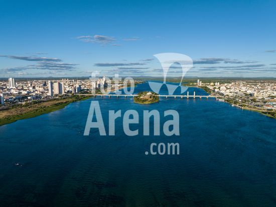 2419633 Imagem capturada por drone da Ponte Presidente Eurico Gaspar Dutra entre Petrolina PE à esquerda e juazeiro BA à direita. Destaque para o Rio Sao Francisco. 9°24'20.9602" S 40°30'26.9418" W