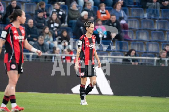 2907421 FRANKFURT, ALEMANHA - 18 DE MARCO: Sara Doorsoun (23 Eintracht Frankfurt Frauen) durante o Google Pixel Frauen-Bundesliga entre Eintracht Frankfurt e TSG Hoffenheim no Stadion am Brentanobad em 18 de marco de 2026 em Frankfurt, Alemanha. (Qianru Zhang/SPP)